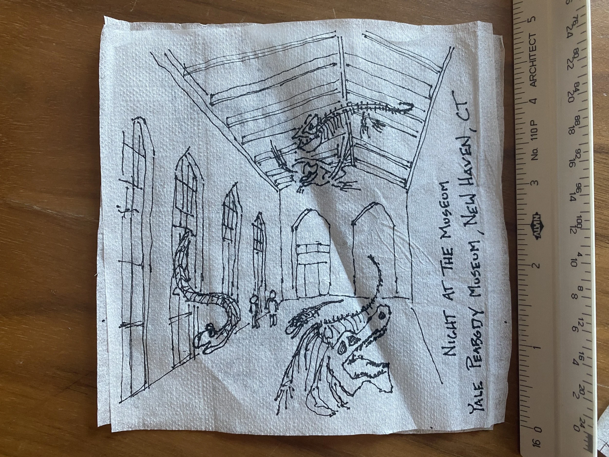 Mac drew the Peabody Museum in New Haven, CT. This French Gothic revival building with intricate brickwork and interior arches, houses scores of Dinosaurs. In 2023 it was renovated, achieving LEED Gold!